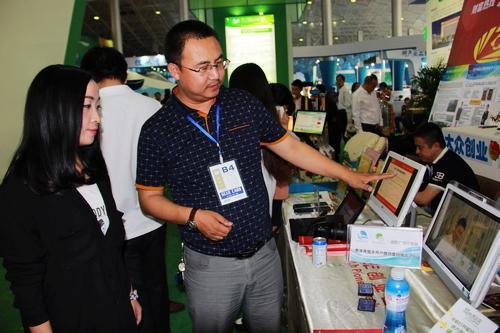6月18日下午,記者在2015中國青海綠色發(fā)展投資貿(mào)易洽談會主會場西寧城南國際會展見到夏晗時,他正在為客戶講解自己的團隊和有關(guān)互聯(lián)網(wǎng)知識。